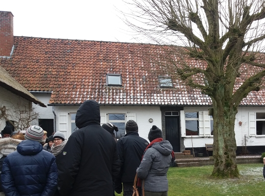 Gisteren openden we de wandeling Hugo Claus onder leiding van de Gidsen Vlaamse Ardennen. Zij toonden ons de plekjes die een link hebben met het verblijf van de familie Claus in Nukerke en vergastten ons tegelijk op een paar sappige verhalen.